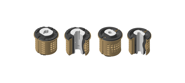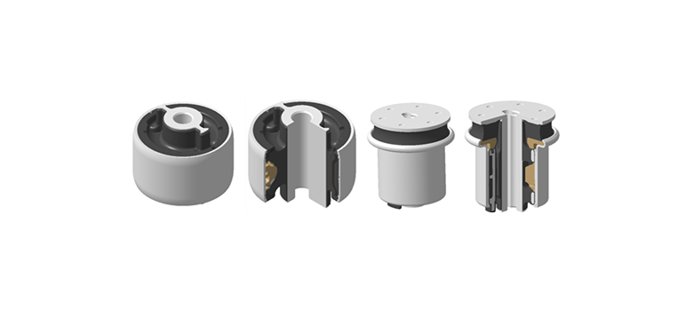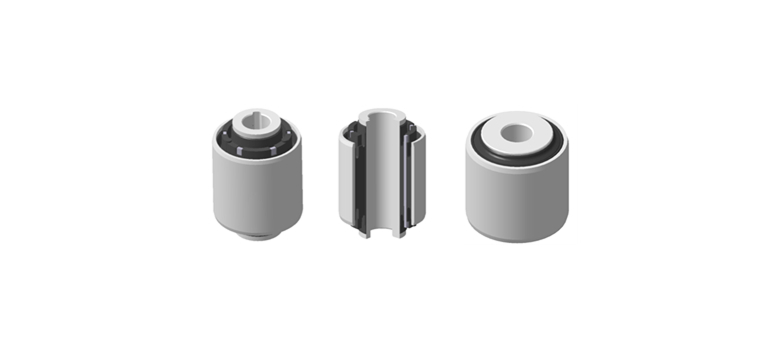 - Designed for NVH and R&H (Ride & Handling) performance, these bushings utilize plastic and aluminum materials to reduce weight. They support vehicle loads while isolating vibrations transmitted from the road surface through the tires.